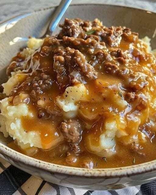 🥔 Ground Beef and Gravy Over Mashed Potatoes